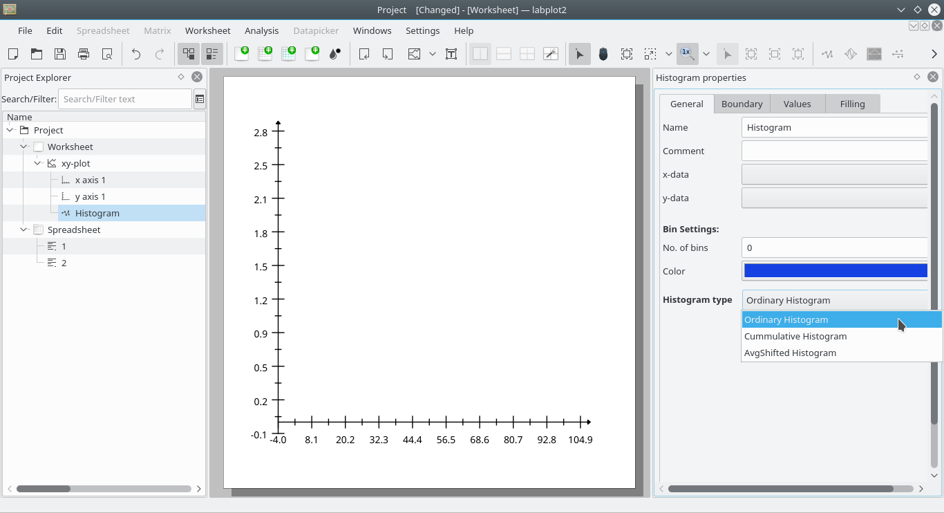 My midterm evaluation target was to create a static histogram in Labplot with an option to add new histogram among the given types and set visible advanced settings.